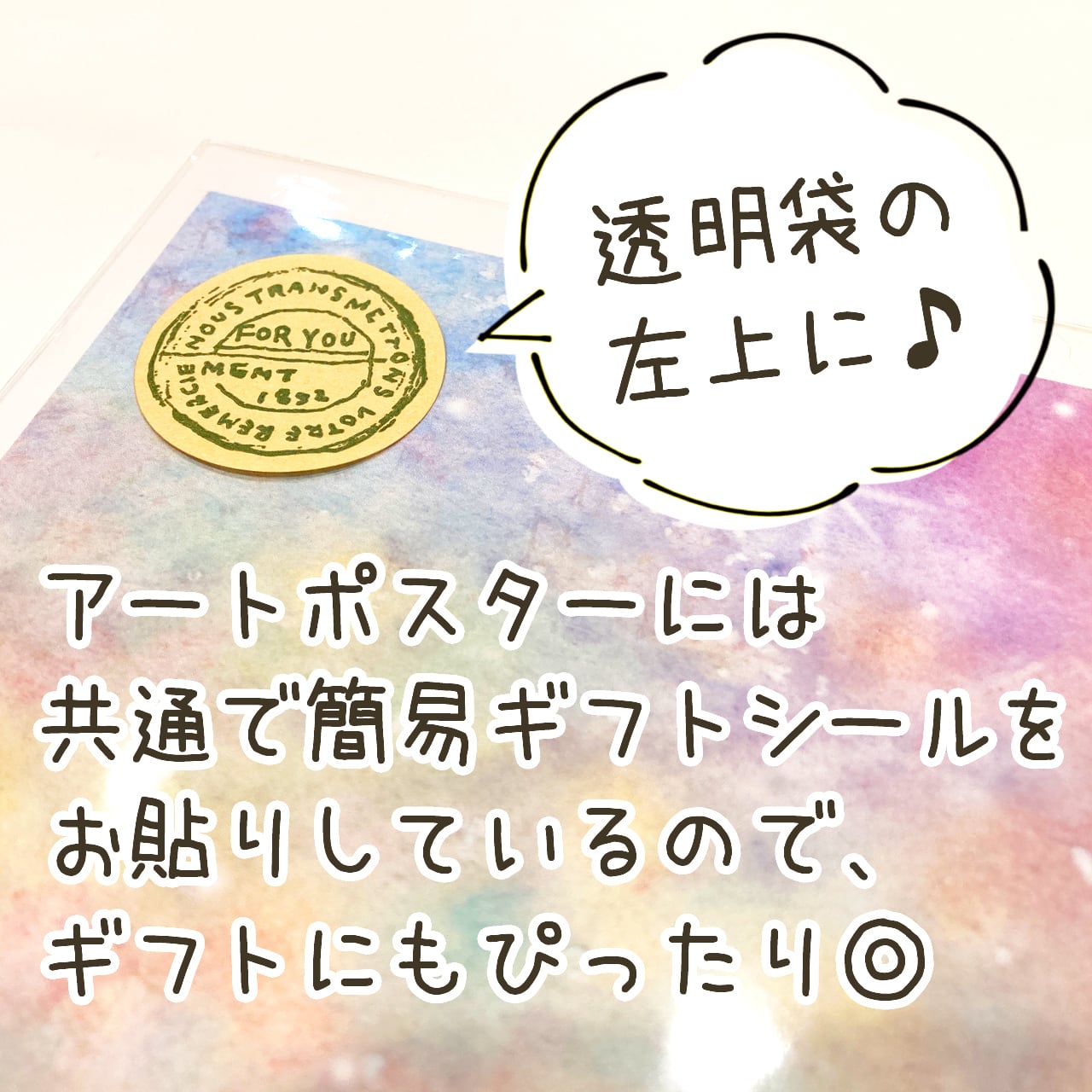 アートポスターには共通で簡易ギフトシールをお貼りしているので、ギフトにもぴったりです◎