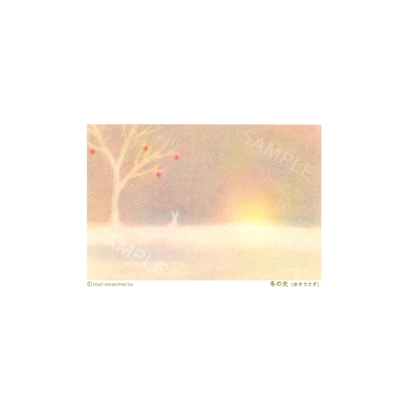 検索用ワード★ うさぎ 雪 冬 ポストカード パステル パステルカラー 光 木